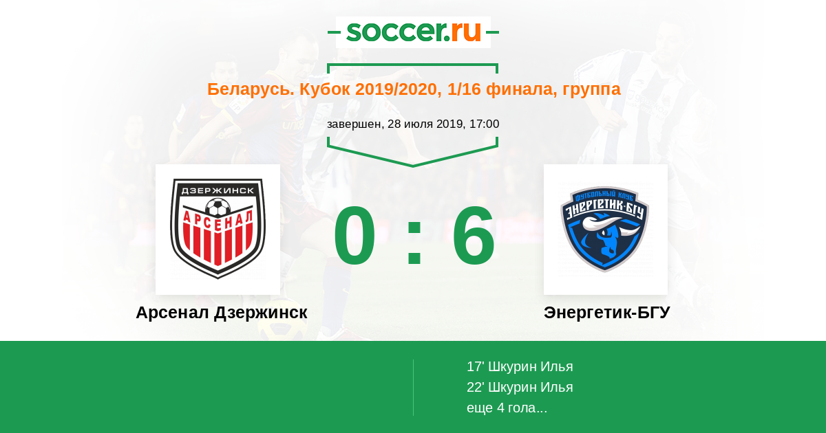 Протокол матча Арсенал Дзержинск против Энергетик-БГУ