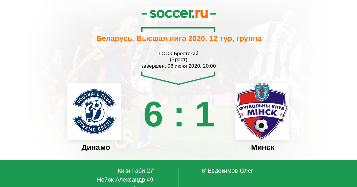 Протокол матча Динамо против Минск