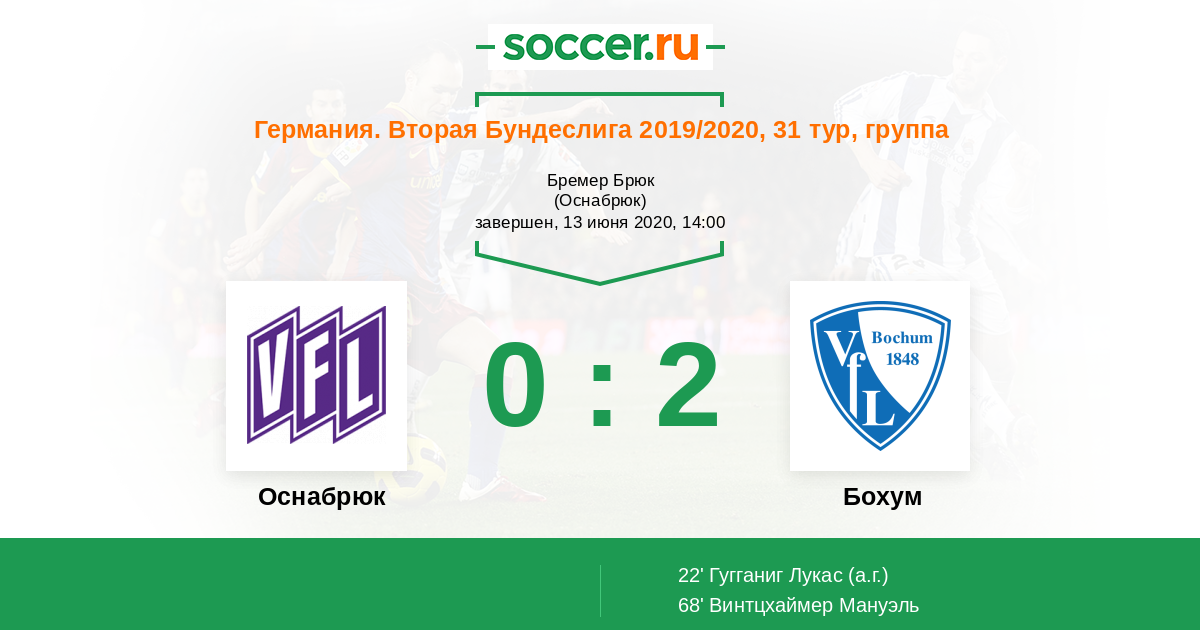 Протокол матча Оснабрюк против Бохум