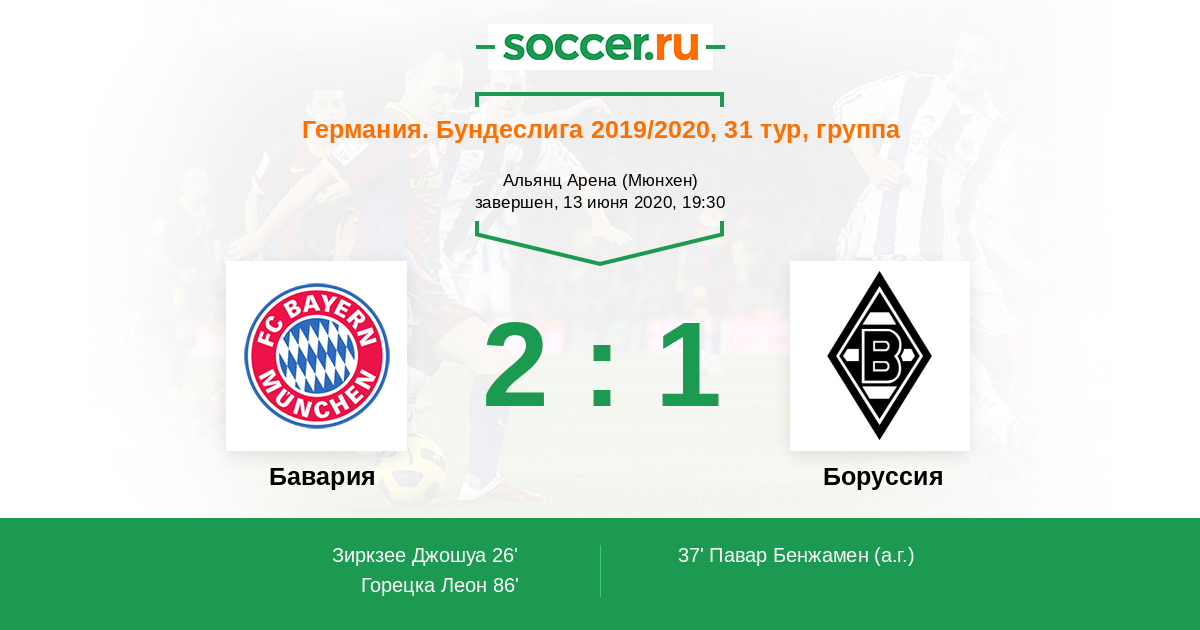Протокол матча Бавария против Боруссия