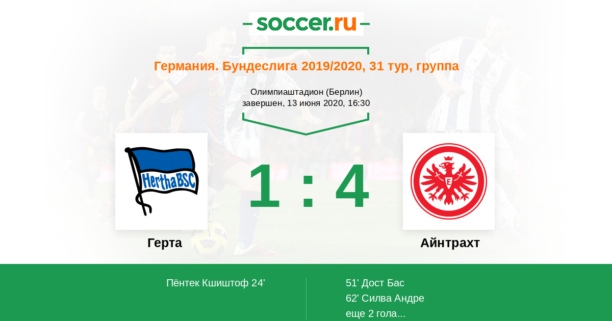 Протокол матча Герта против Айнтрахт
