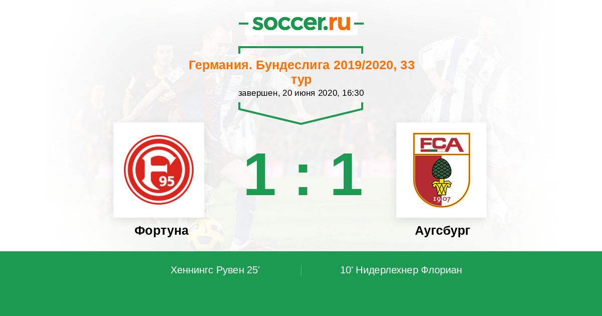 Протокол матча Фортуна против Аугсбург