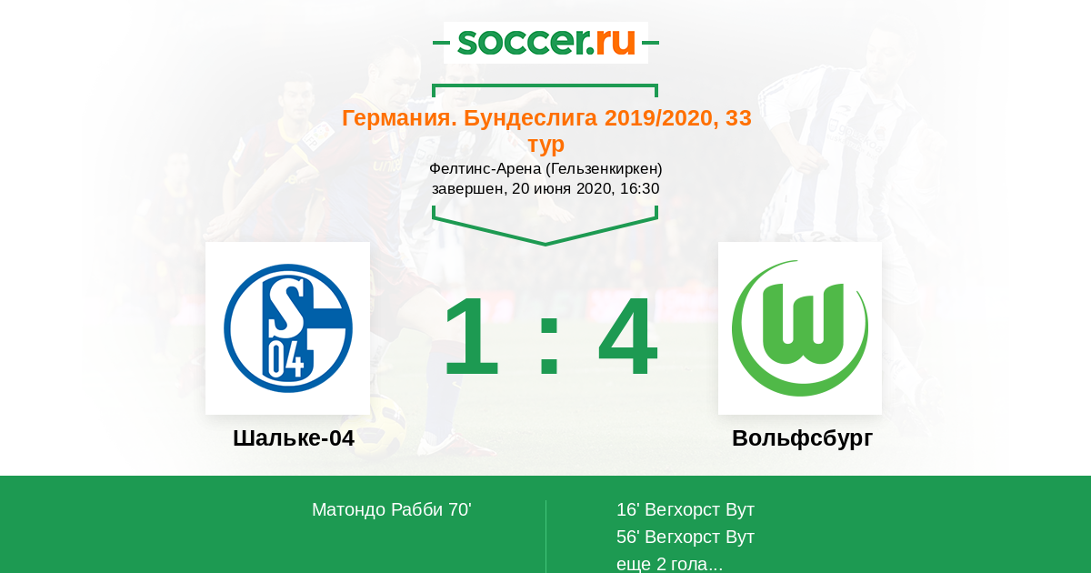 Протокол матча Шальке-04 против Вольфсбург
