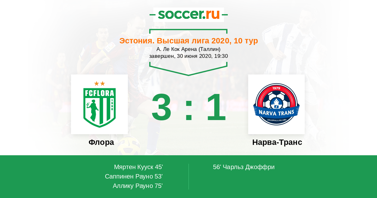 Протокол матча Флора против Нарва-Транс