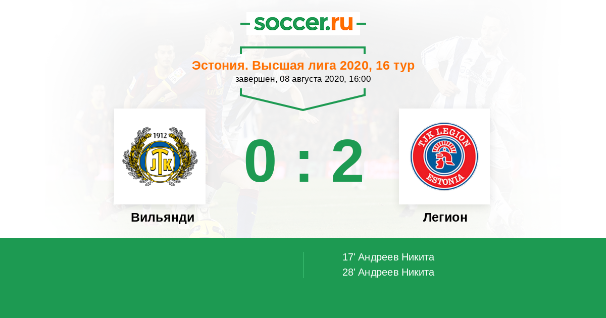 Протокол матча Вильянди против Легион