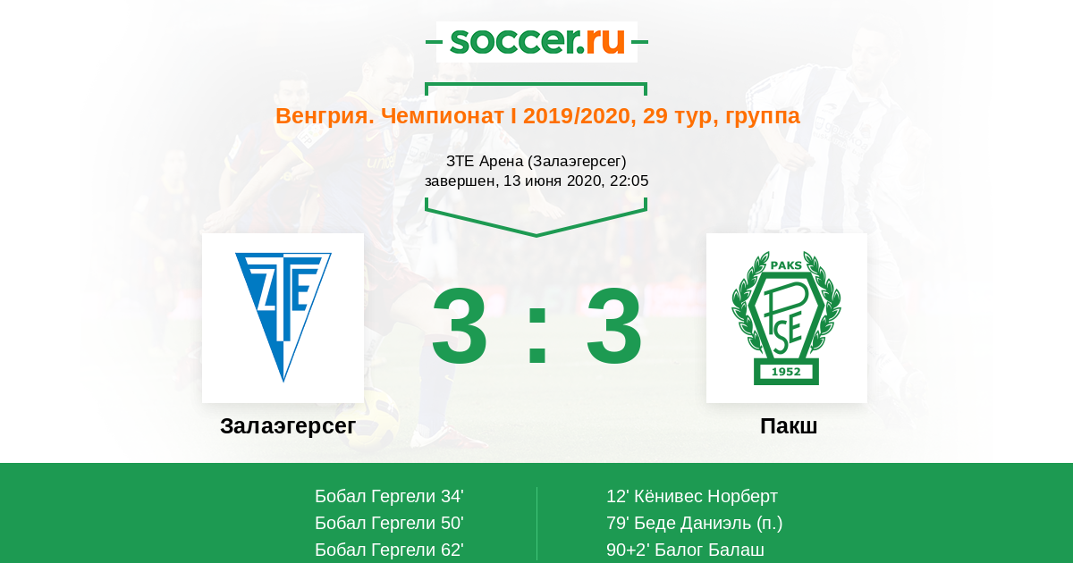 Протокол матча Залаэгерсег против Пакш