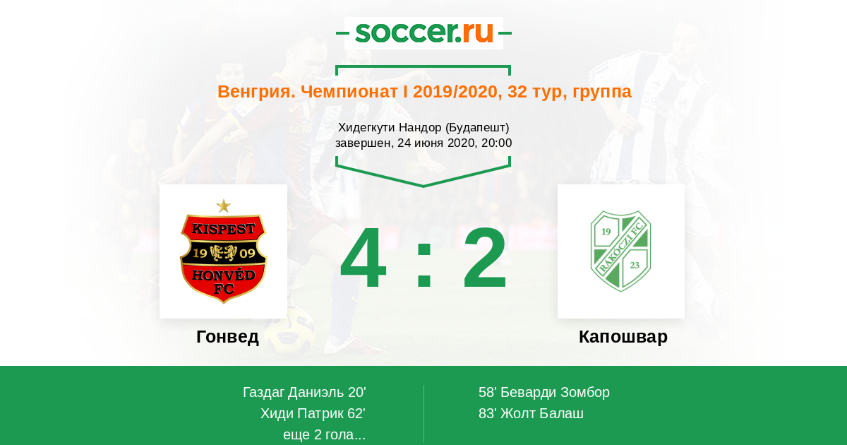 Протокол матча Гонвед против Капошвар