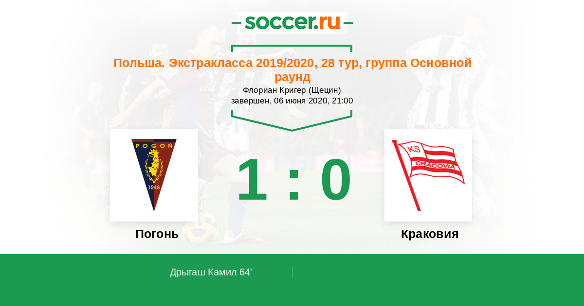 Протокол матча Погонь против Краковия