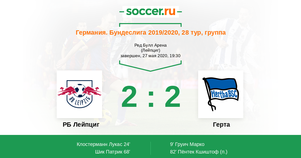 Протокол матча РБ Лейпциг против Герта