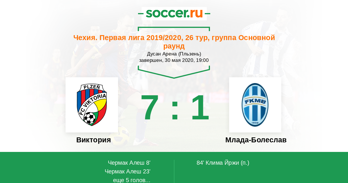 Протокол матча Виктория против Млада-Болеслав