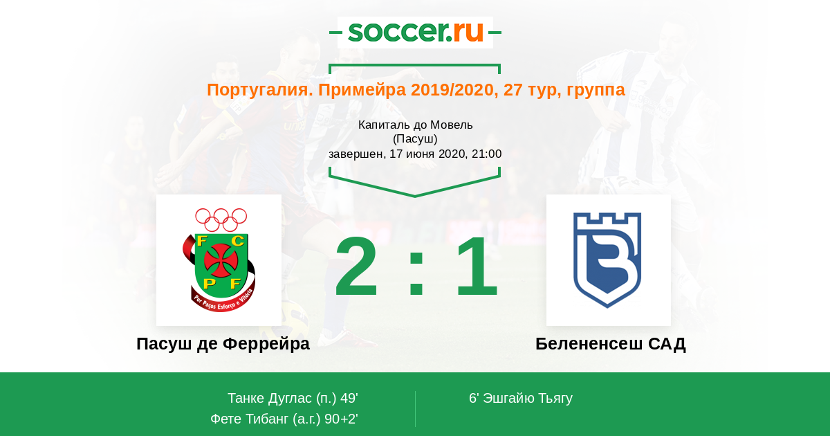 Протокол матча Пасуш де Феррейра против Белененсеш САД