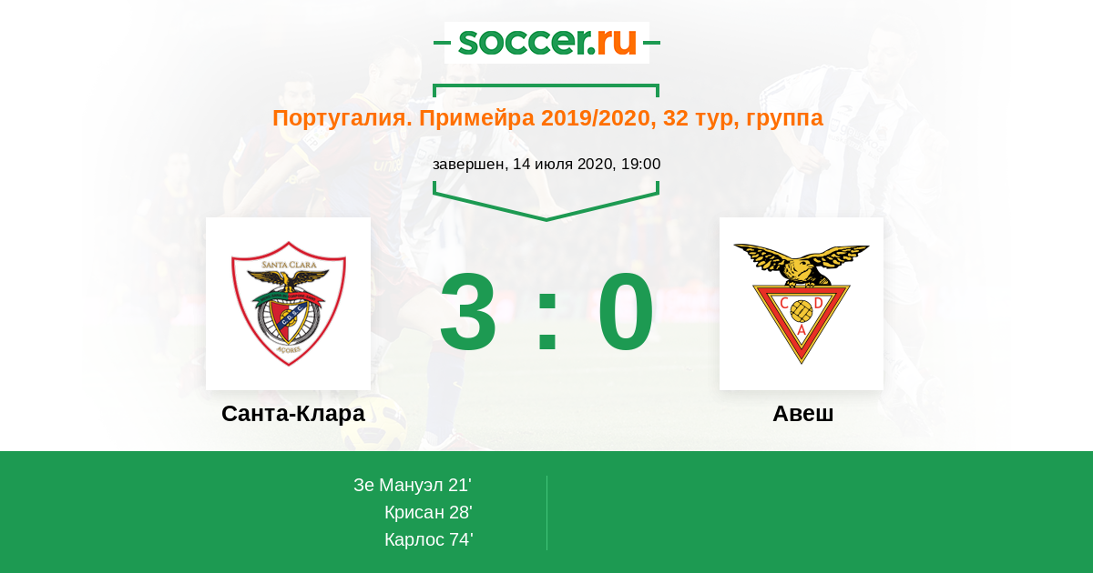 Протокол матча Санта-Клара против Авеш