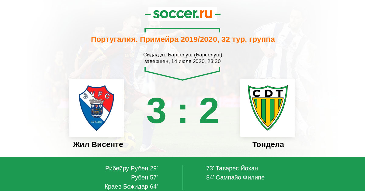 Протокол матча Жил Висенте против Тондела