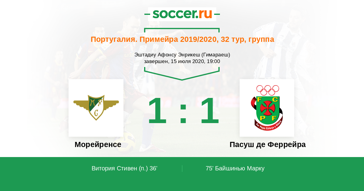 Протокол матча Морейренcе против Пасуш де Феррейра
