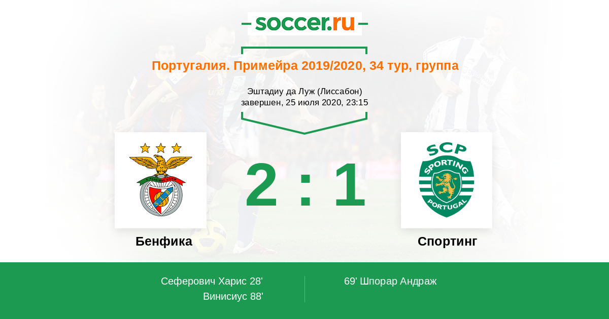 Протокол матча Бенфика против Спортинг