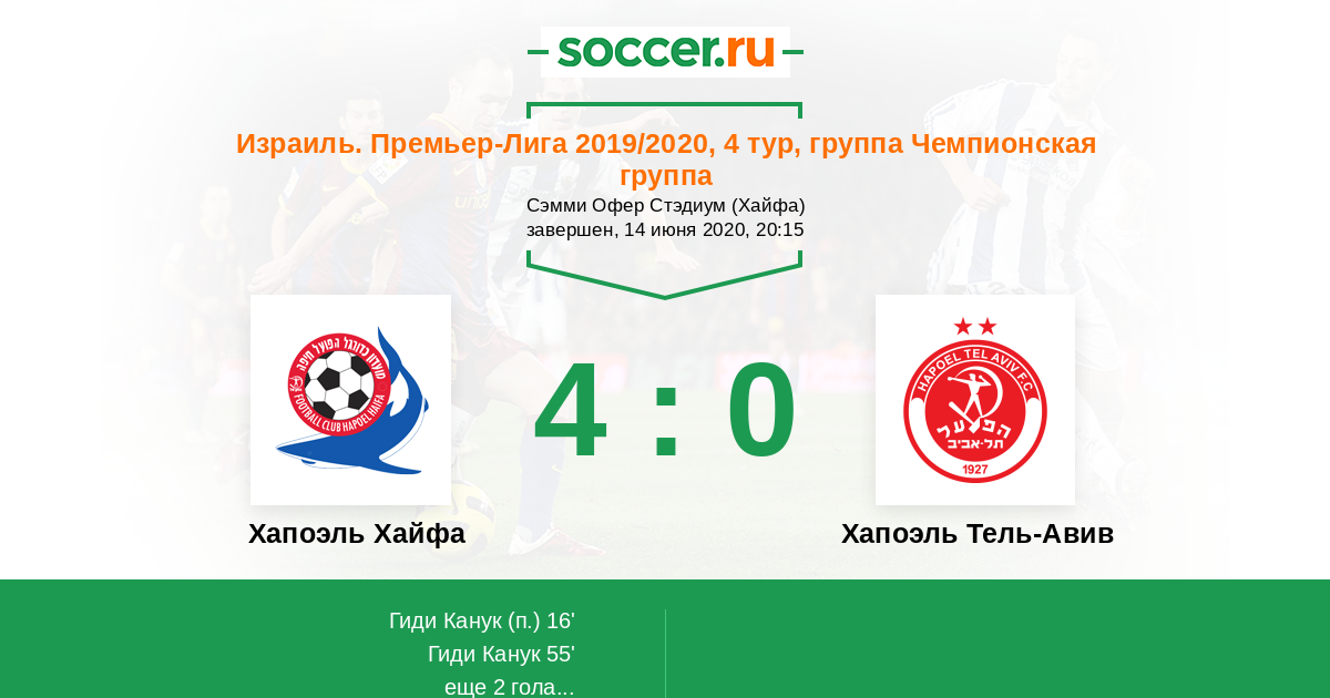 Протокол матча Хапоэль Хайфа против Хапоэль Тель-Авив
