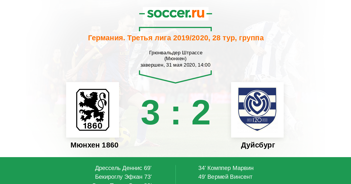 Протокол матча Мюнхен 1860 против Дуйсбург