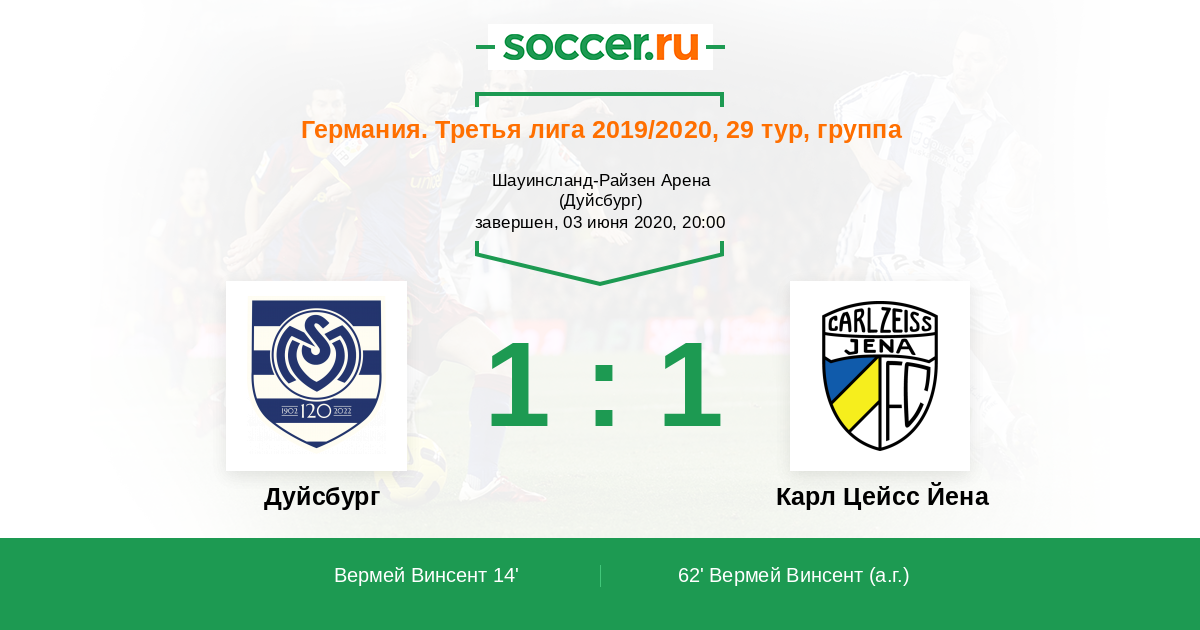 Протокол матча Дуйсбург против Карл Цейсс Йена