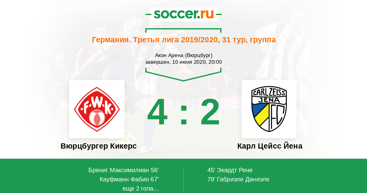 Протокол матча Вюрцбургер Кикерс против Карл Цейсс Йена
