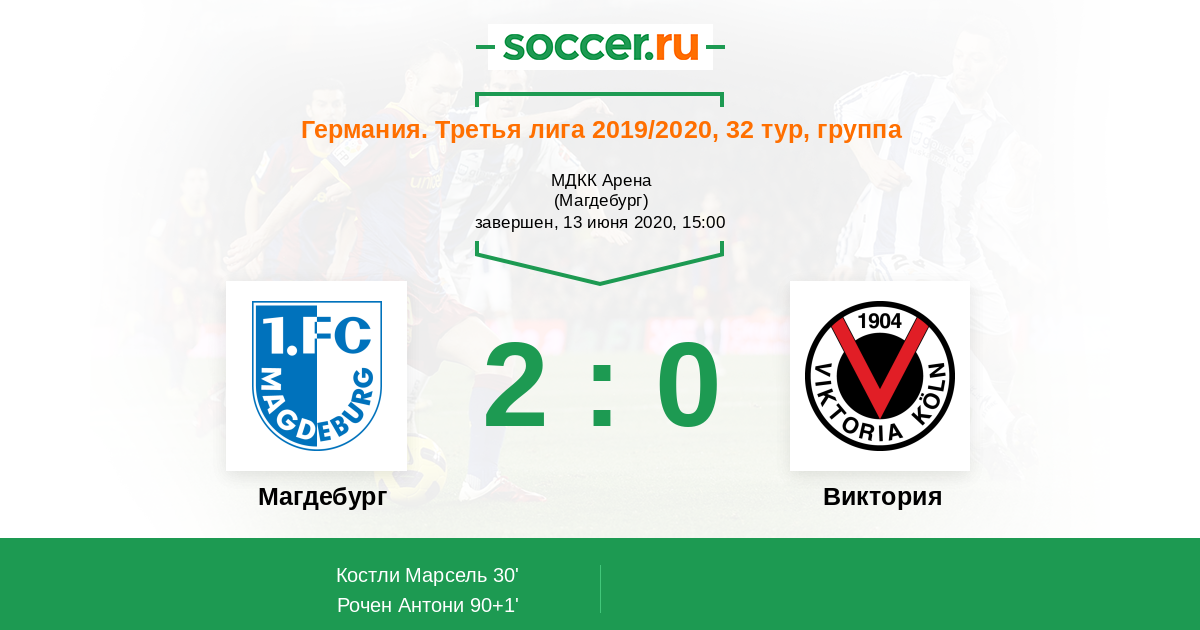 Протокол матча Магдебург против Виктория