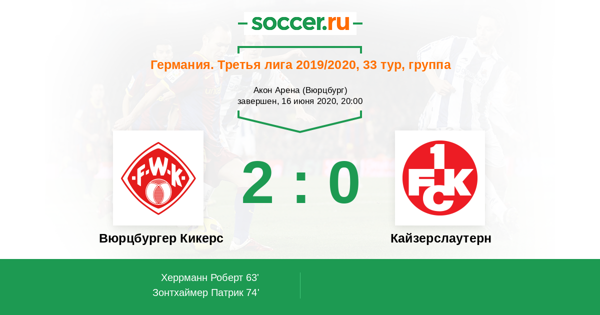 Протокол матча Вюрцбургер Кикерс против Кайзерслаутерн
