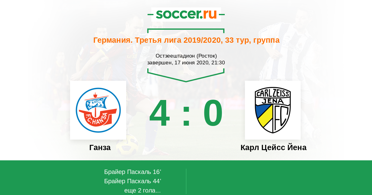 Протокол матча Ганза против Карл Цейсс Йена