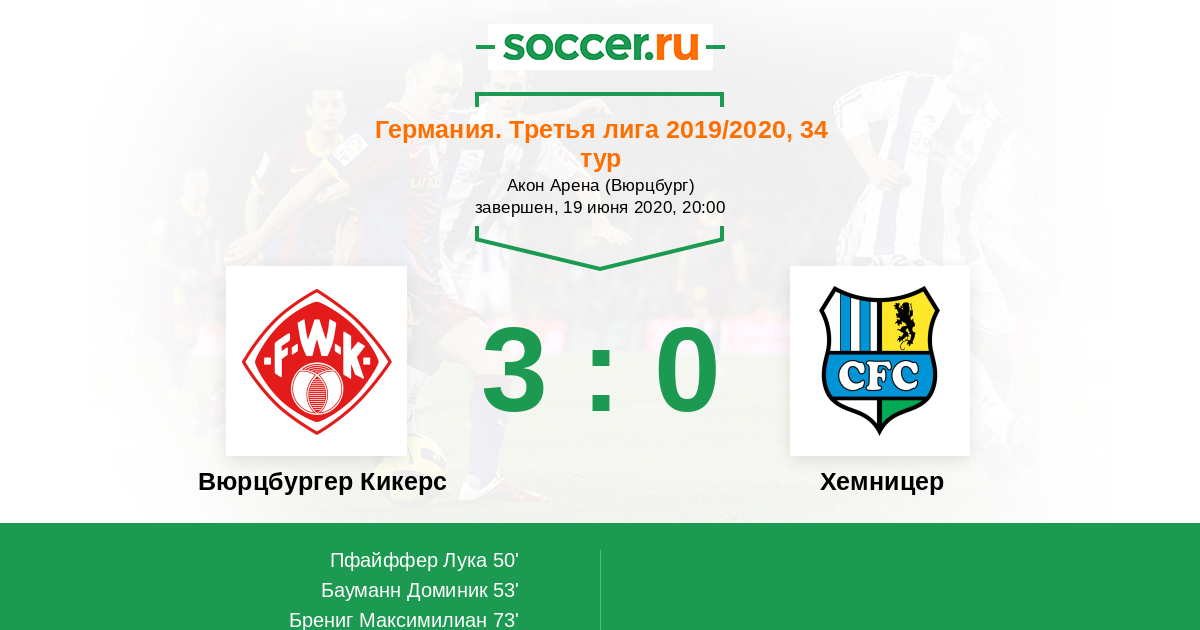 Протокол матча Вюрцбургер Кикерс против Хемницер