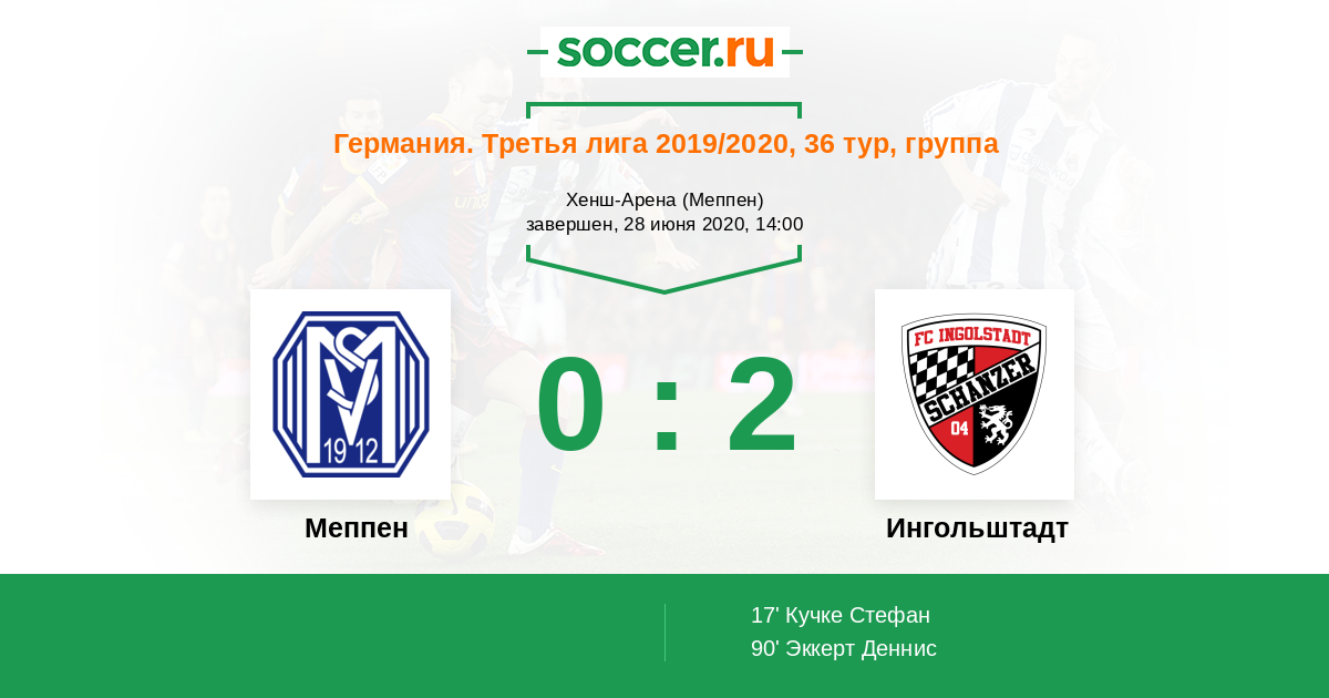 17' (0:1) Кучке Стефан (30) (Байстер Максимилиан (10))