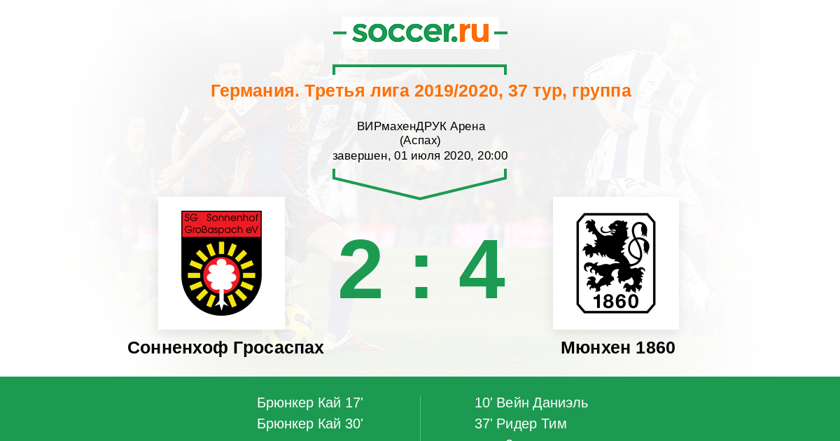 Протокол матча Сонненхоф Гросаспах против Мюнхен 1860