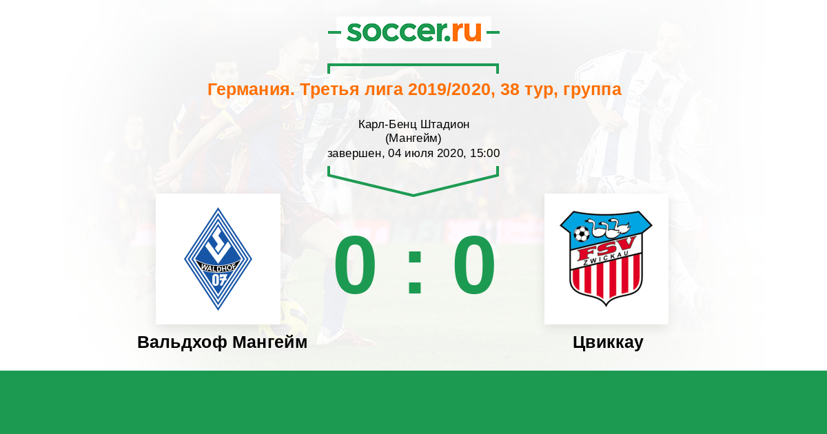 Протокол матча Вальдхоф Мангейм против Цвиккау
