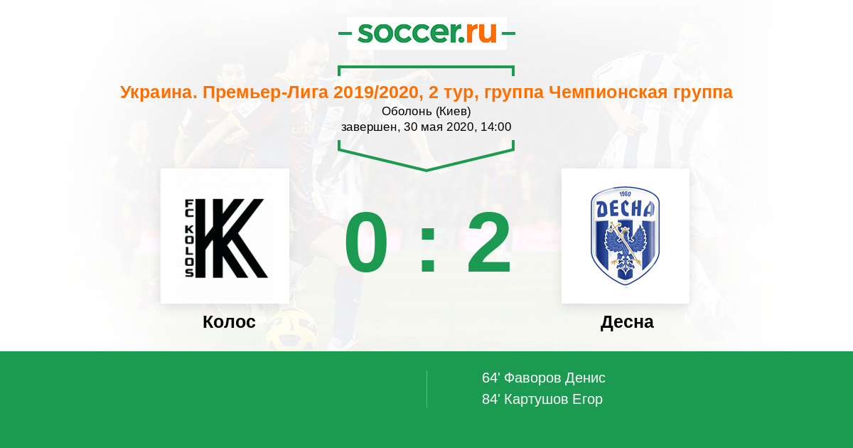 Протокол матча Колос против Десна