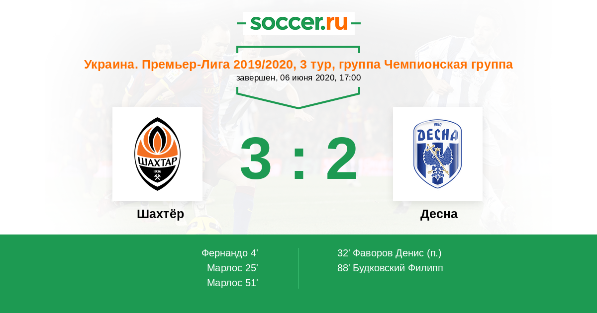 Протокол матча Шахтёр против Десна
