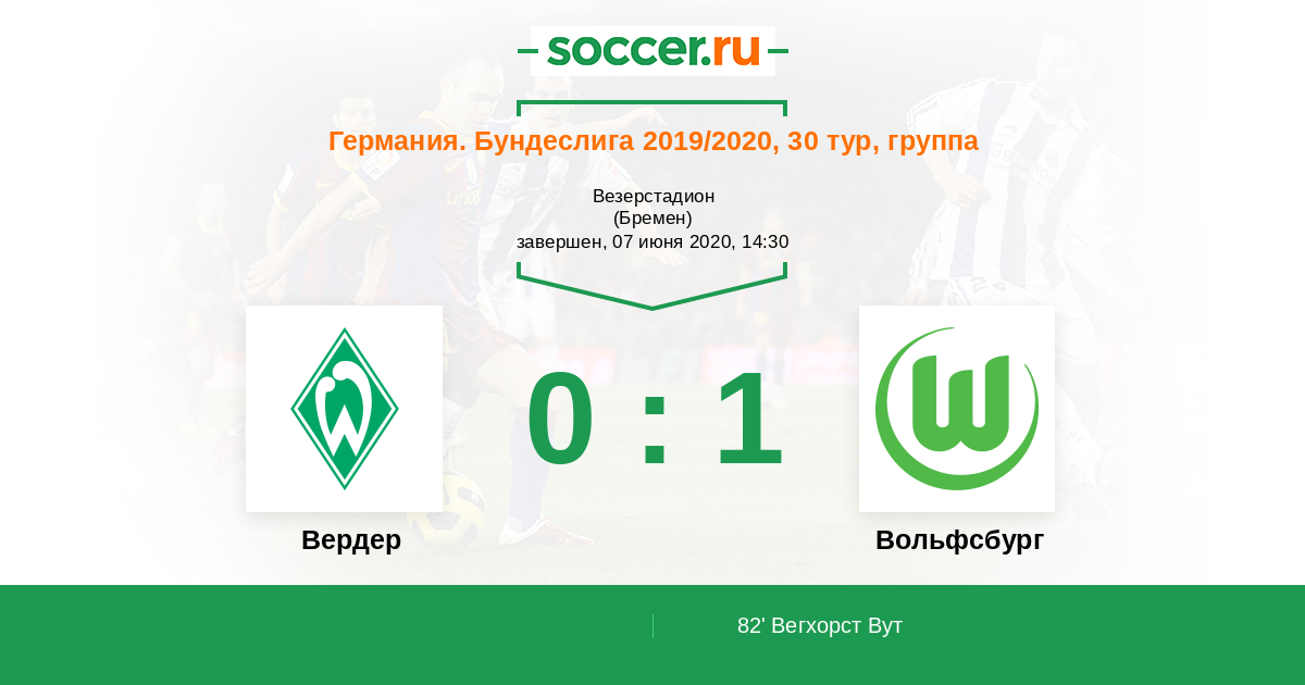 Протокол матча Вердер против Вольфсбург