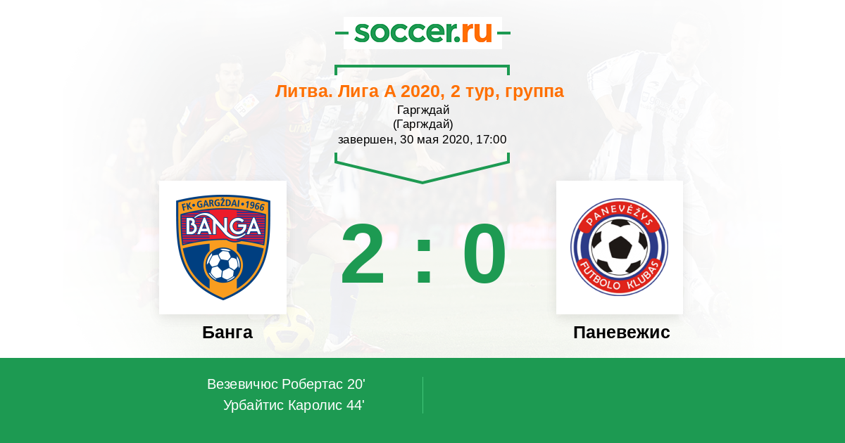 20' (1:0) Везевичюс Робертас (32)