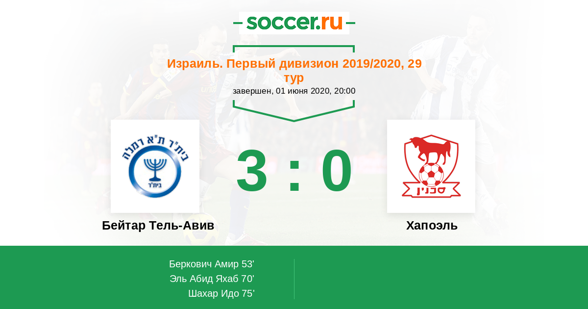 Протокол матча Бейтар Тель-Авив против Хапоэль