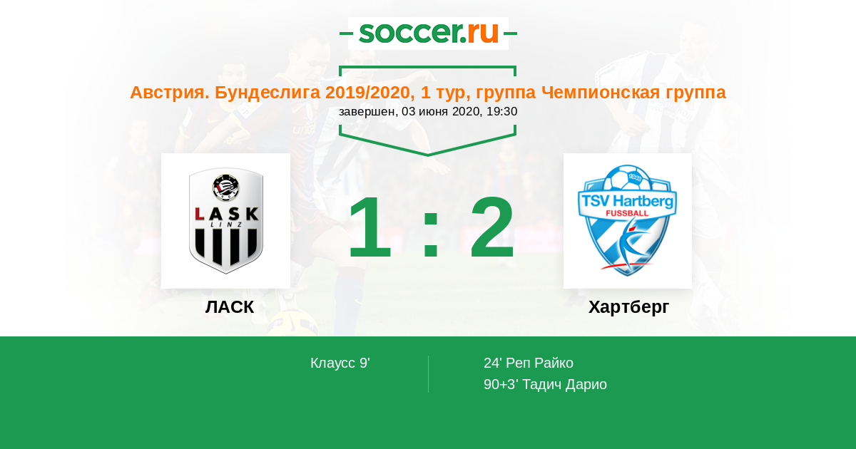 90+3' (1:2) Тадич Дарио (24) (Лакенедер Феликс (32))