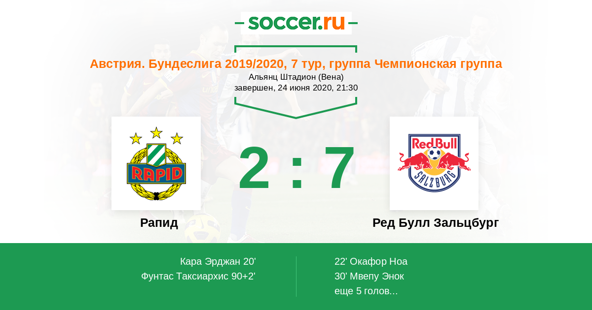 Протокол матча Рапид против Ред Булл Зальцбург