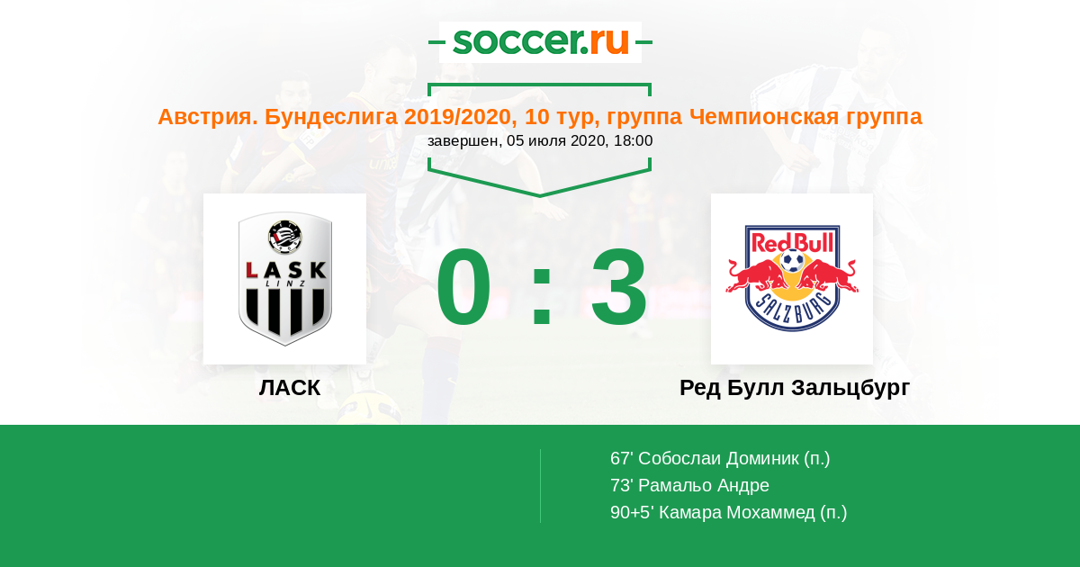 Протокол матча ЛАСК против Ред Булл Зальцбург
