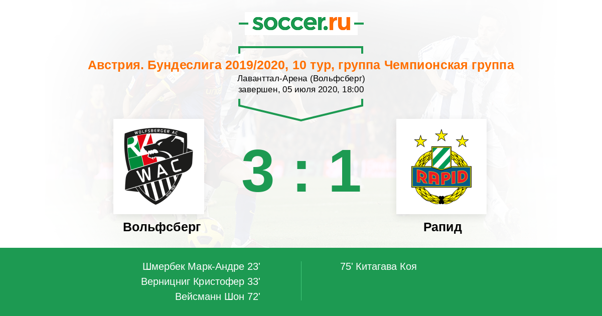 Протокол матча Вольфсберг против Рапид
