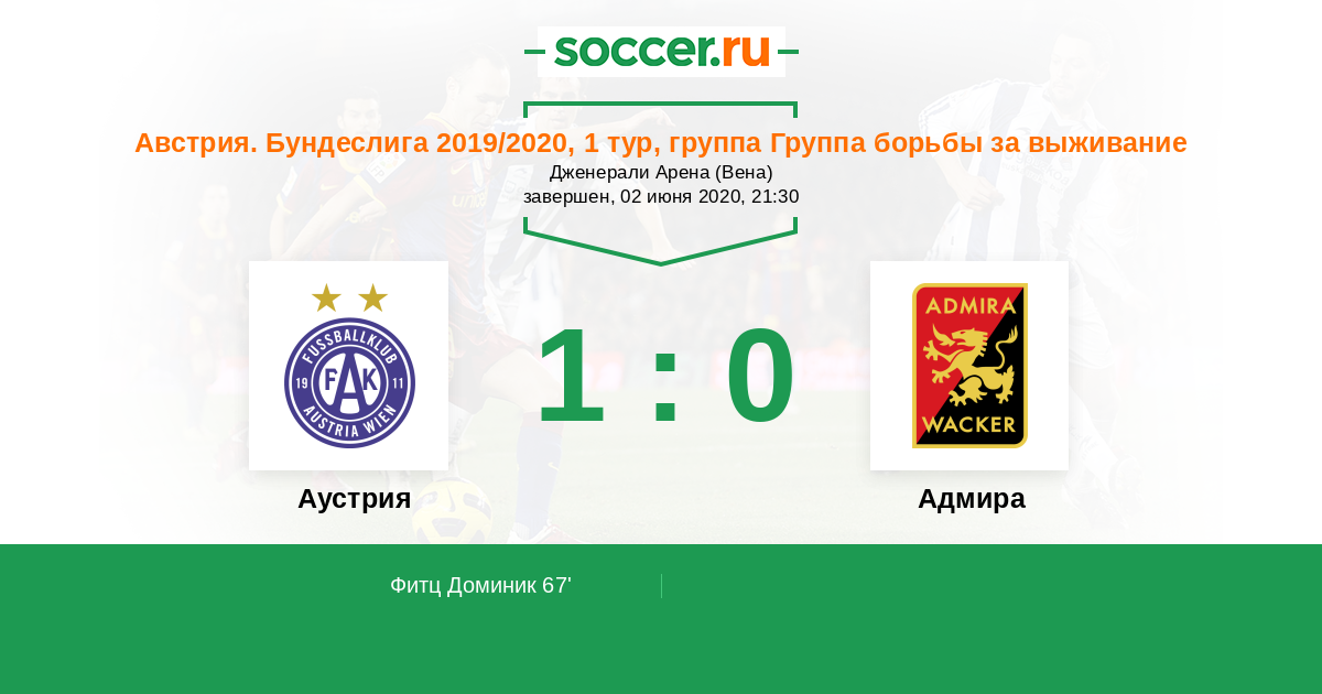 Протокол матча Аустрия против Адмира