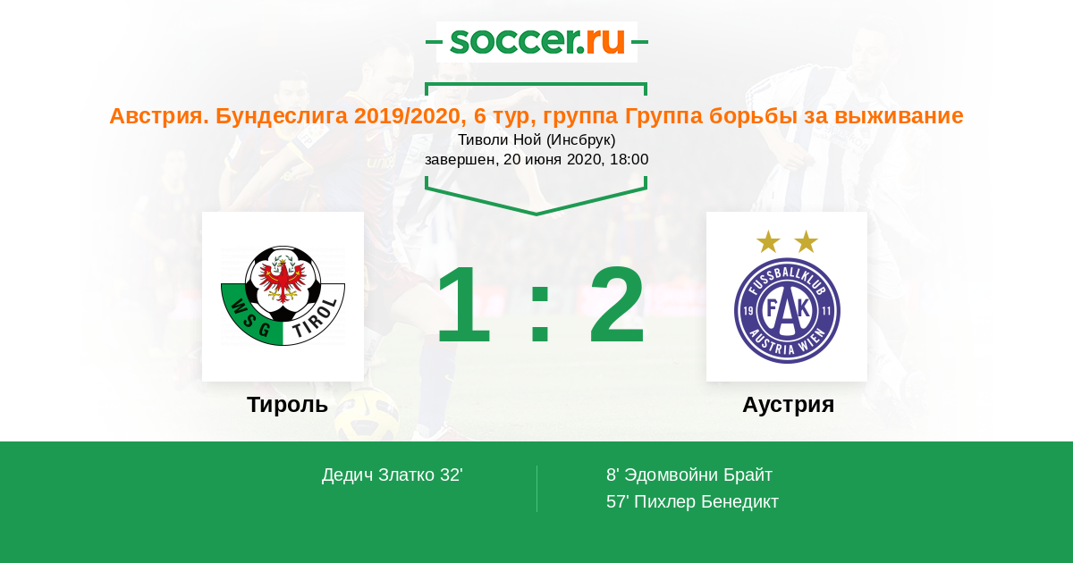 Протокол матча Тироль против Аустрия
