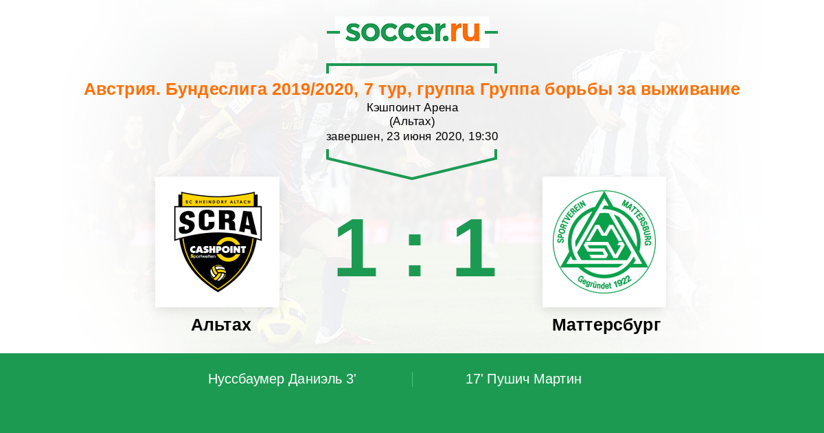 17' (1:1) Пушич Мартин (19) (Грубер Андреас (11))
