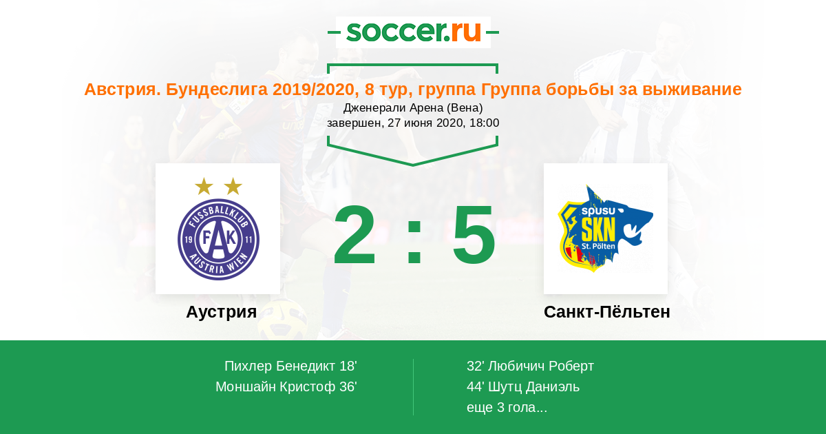 Протокол матча Аустрия против Санкт-Пёльтен