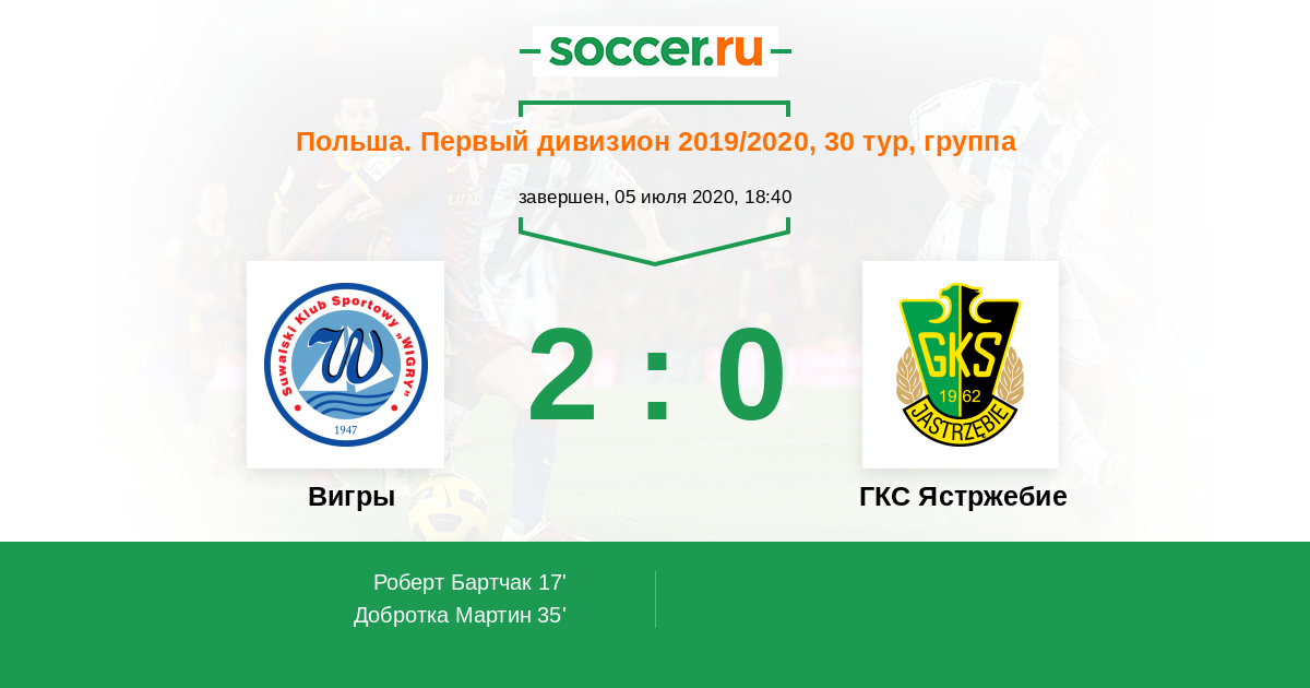 Протокол матча Вигры против ГКС Ястржебие