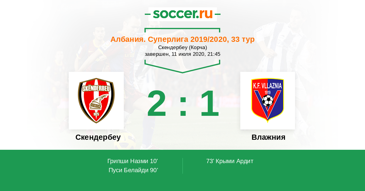 Протокол матча Скендербеу против Влажния