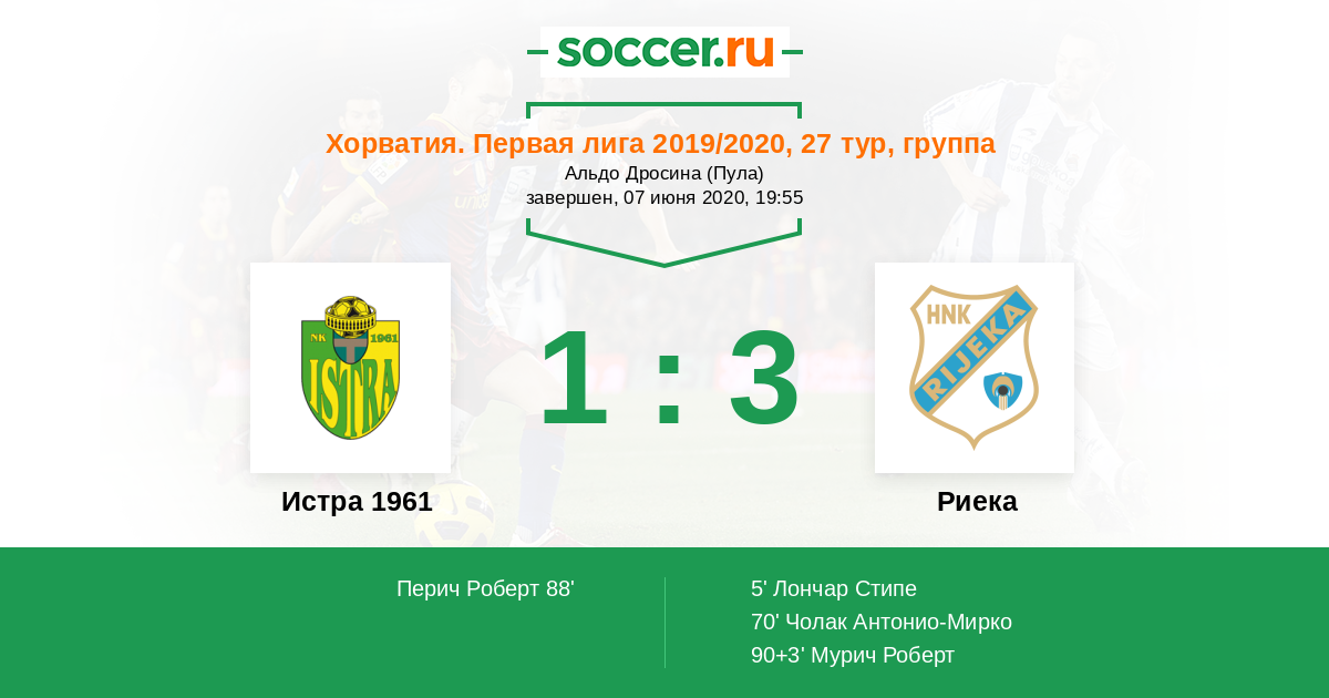 Протокол матча Истра 1961 против Риека
