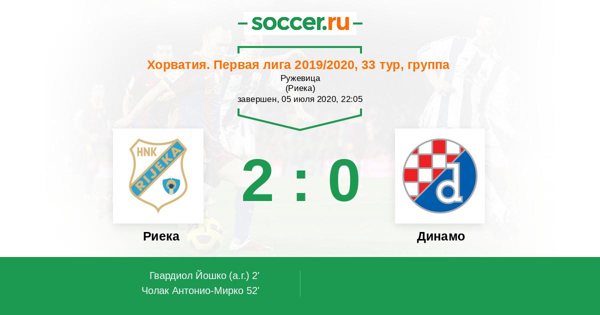 Протокол матча Риека против Динамо