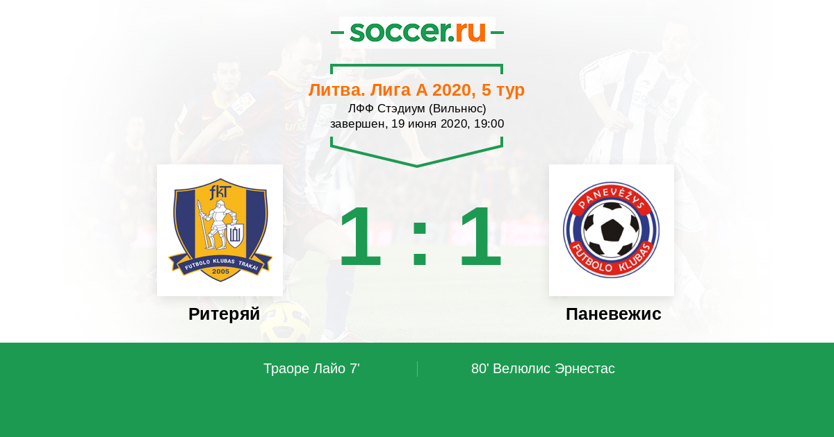 Протокол матча Ритеряй против Паневежис
