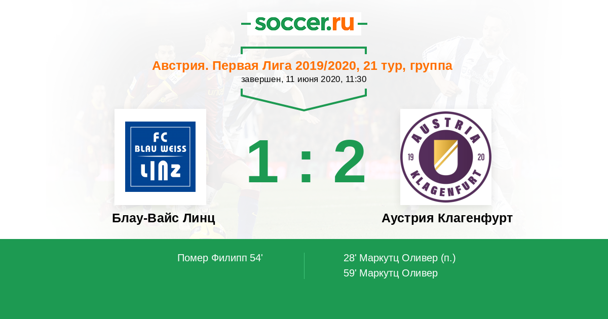 Протокол матча Блау-Вайс Линц против Аустрия Клагенфурт
