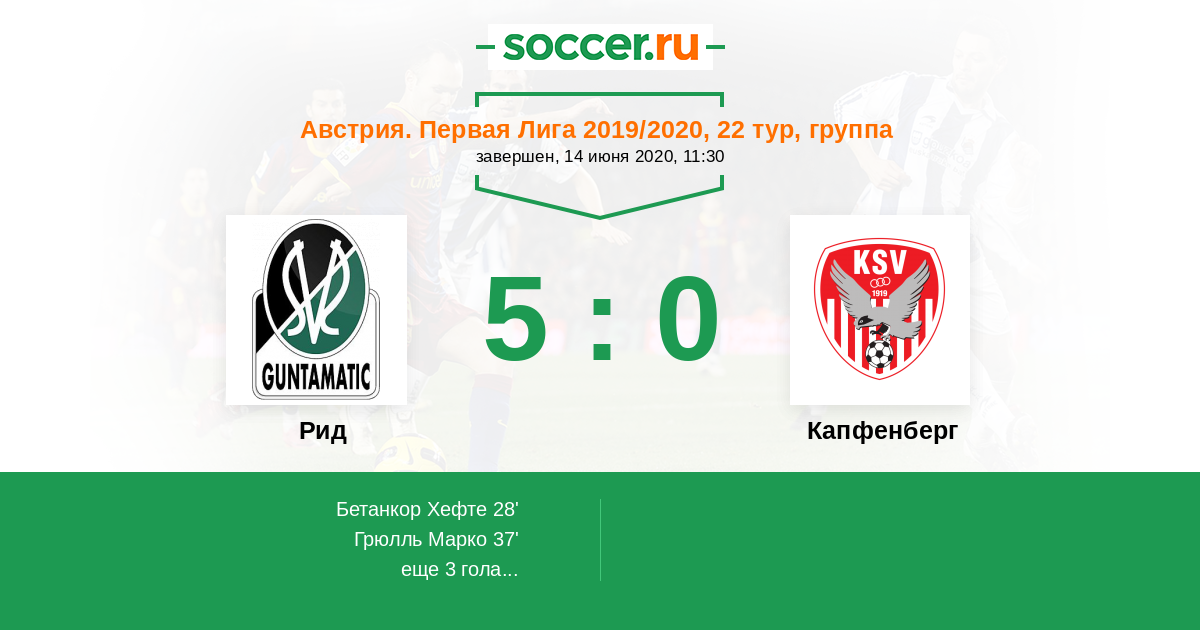 Протокол матча Рид против Капфенберг